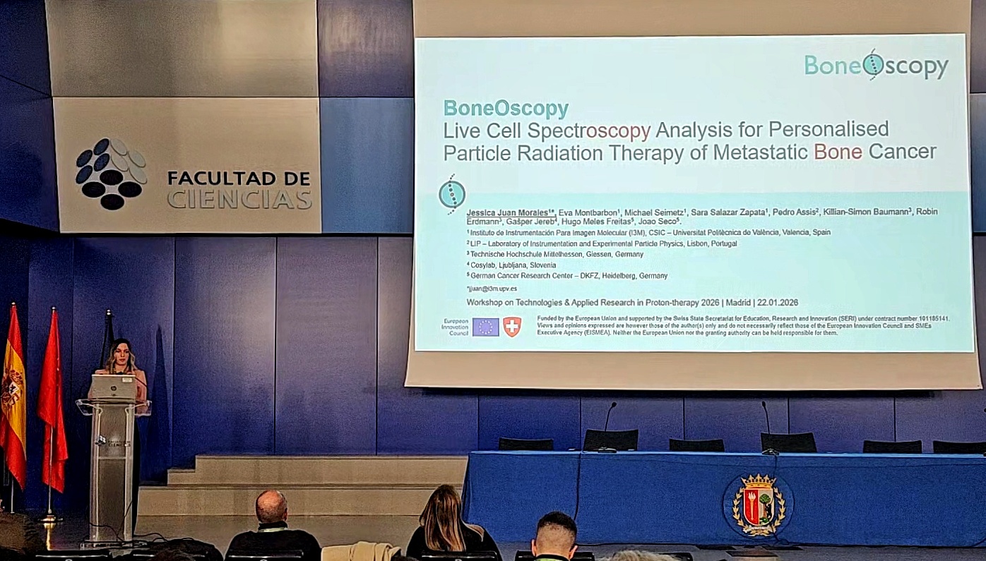 The Instituto De Instrumentación Para Imagen Molecular (i3M), a BoneOscopy project partner and joint research center of the Consejo Superior de Investigaciones Científicas (CSIC), took part in the Workshop on Technologies & Applied Research in Proton-therapy 2026 held in Madrid, Spain, at the Universidad Autónoma de Madrid (UAM) from 21st to 23rd January 2026. This workshop, organized by UAM and Centro de Micro-Análisis de Materiales (CMAM), aims to foster collaboration between the clinical, scientific and technological communities in the context of the expanding proton therapy landscape and provides a platform to exchange ideas, share recent developments and explore synergies between treatment centers, researchers and infrastructure developers.